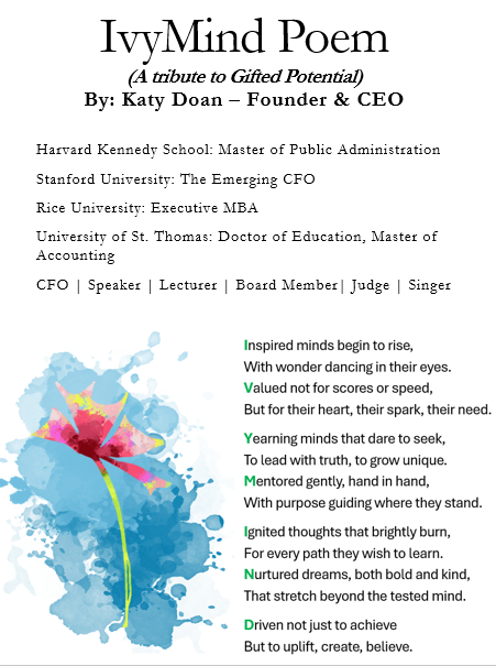 With USA Gifted IvyMind Academy, Katy’s mission is to inspire young minds, empower families, and transform futures — one student at a time.